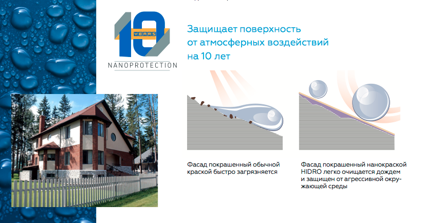 С помощью краски Hidro, после каждого дождя, ваш фасад приобретает цвет свежепокрашенного.